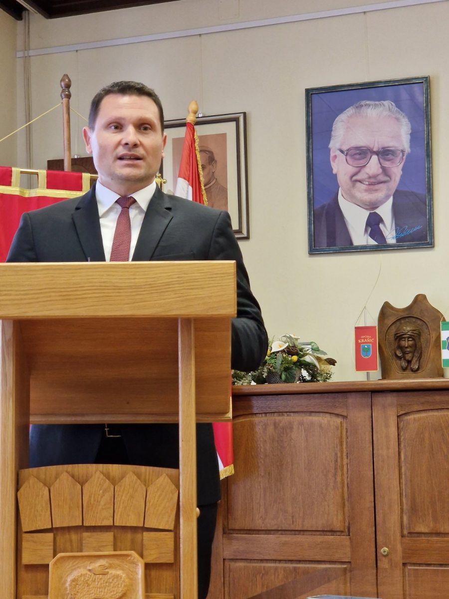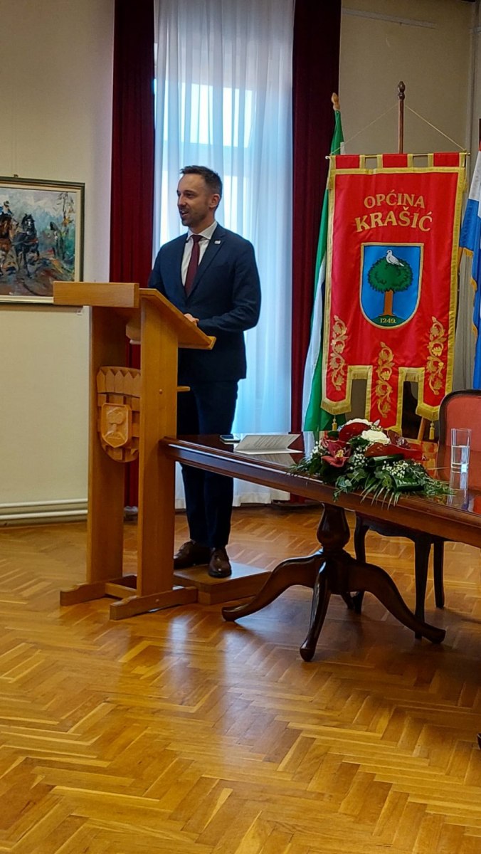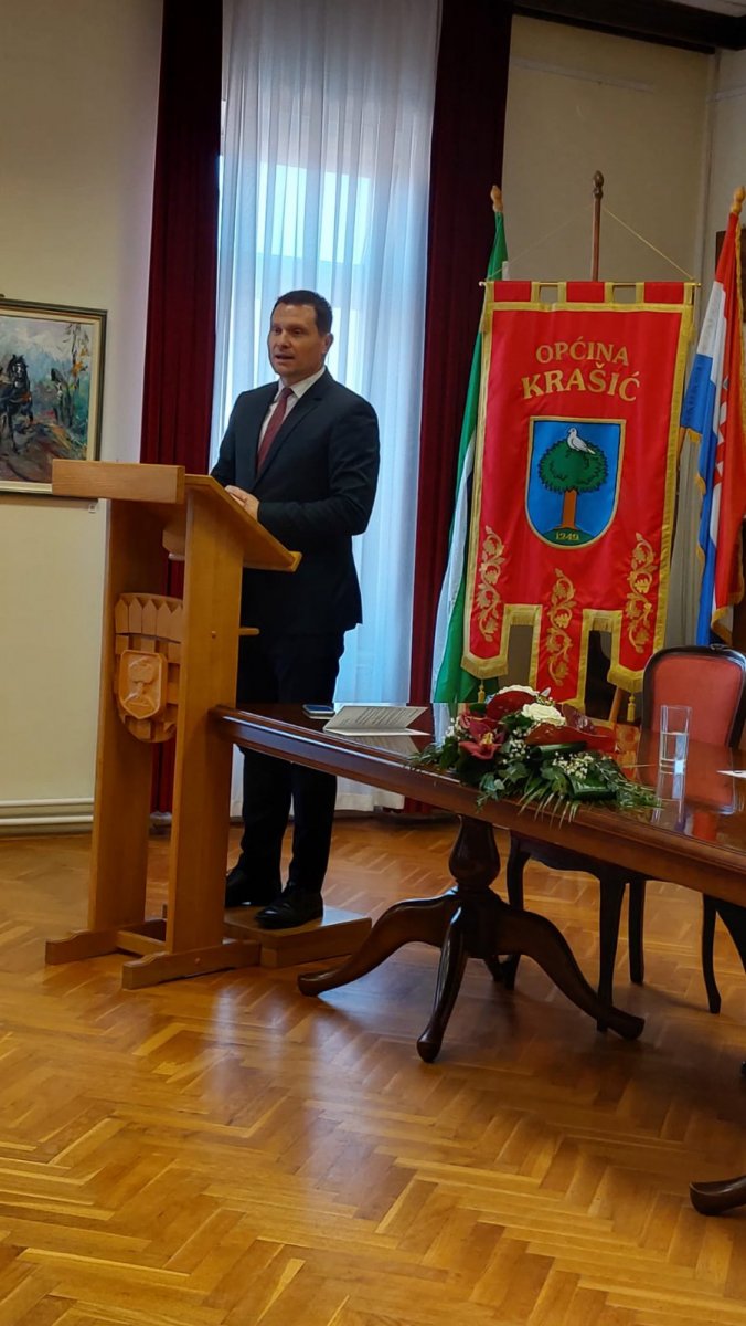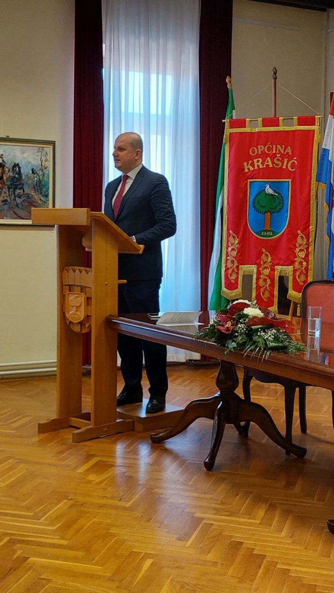 Nakon polaganja cvijeća je u općinskoj vijećnici održana je svečana sjednica općinskog vijeća Općine Krašić na kojoj su prisustvovali brojni državni dužnosnici, gosti i prijatelji Općine Krašić. Sjednicu je otvorio i sve nazočne pozdravio potpredsjednik općinskog vijeća gospodin Josip Rajaković, a potom se prisutnima obratio načelnik Općine Krašić Josip Petković Fajnik. Nakon domaćina, prisutnima su se obratili izaslanik predsjednika Hrvatskog sabora, saborski zastupnik gospodin Ivan Ćelić, izaslanik predsjednika Vlade RH ministar rada, mirovinskoga sustava, obitelji i socijalne politike gospodin Marin Piletić te zamjenik župana Zagrebačke županije Ervin Kolarec. Također, zahvaljujemo na dolasku potpredsjedniku skupštine Zagrebačke županije Mati Čičku, pomoćniku ministra branitelja Špiri Janošu, državnim tajnicima Draženu Opaliću i Tomislavu Družaku, Hrvatskom generalskom zboru, svim gradonačelnicama, gradonačenicima, načelnicama, načelnicima, predstavnicima udruga, ustanova i institucija te općinskim vijećnicima i vijećnicama koji su svojim dolaskom uveličali ovaj poseban dan za Stepinčev rodni kraj “Dolinu kardinala.
